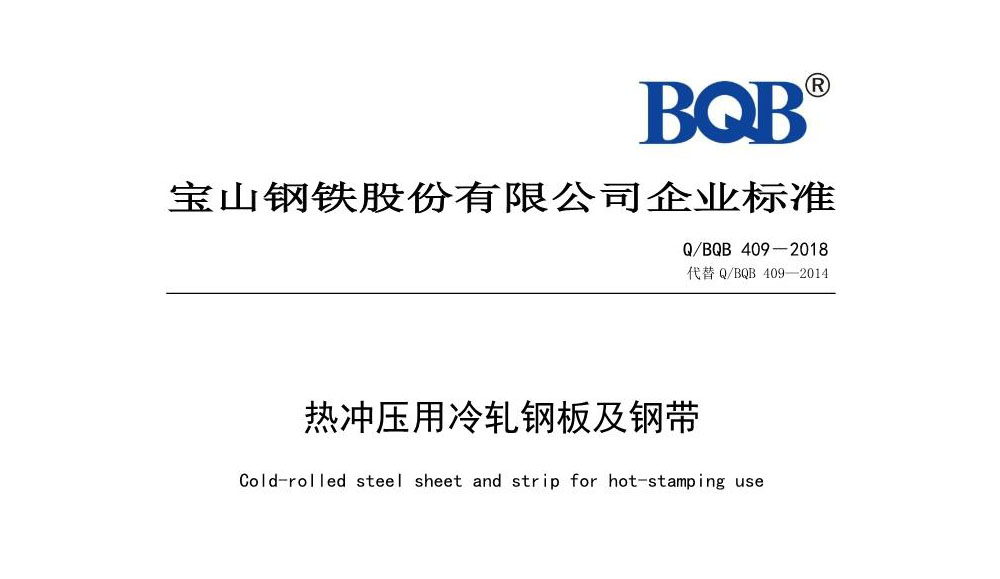 宝钢企标Q/BQB 409-2018热冲压用冷轧钢板及钢带手艺标准