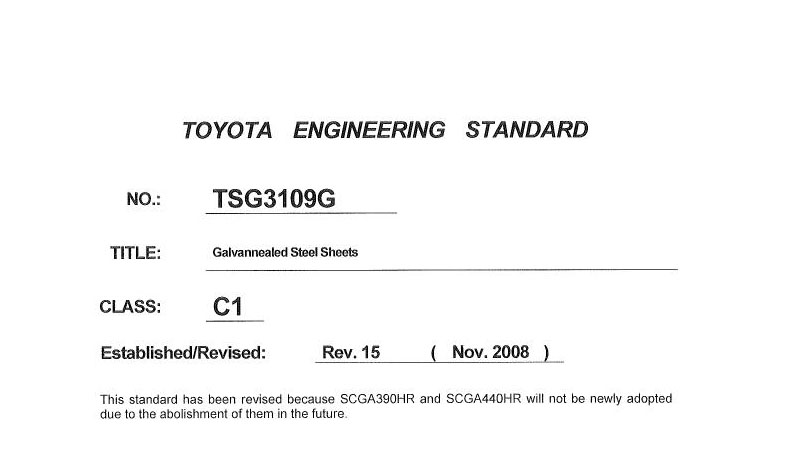 丰田工程标准Toyota TSG3109G-2008镀锌钢