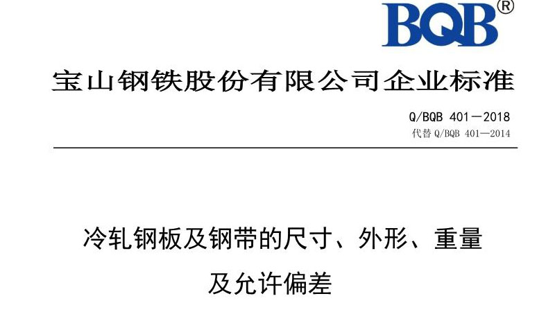 宝钢企业标准Q/BQB 401-2018 冷轧钢板钢带