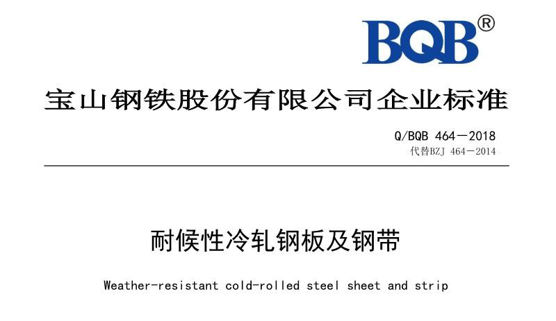 宝钢企业标准Q/BQB 464-2018 耐候性冷轧钢板钢带