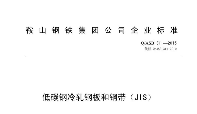 鞍钢标准Q/ABS 311-2015低碳钢冷轧钢板钢带
