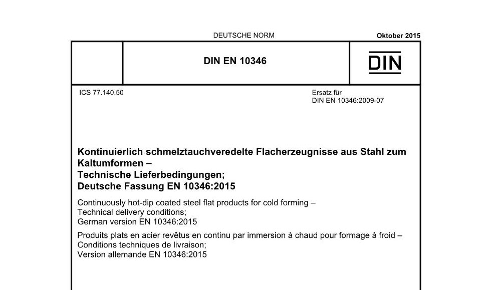 欧洲标准DIN EN 10346-2015冷成形一连热浸镀钢 薄板钢带 执行标准 手艺要求