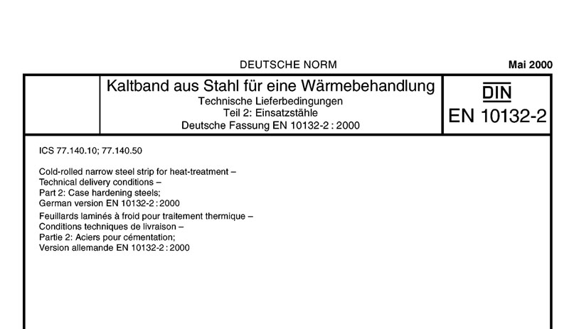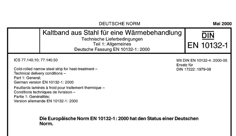 欧标德标DIN EN 10132-1 热处置惩罚用冷轧窄钢带 行业参考标准(1)