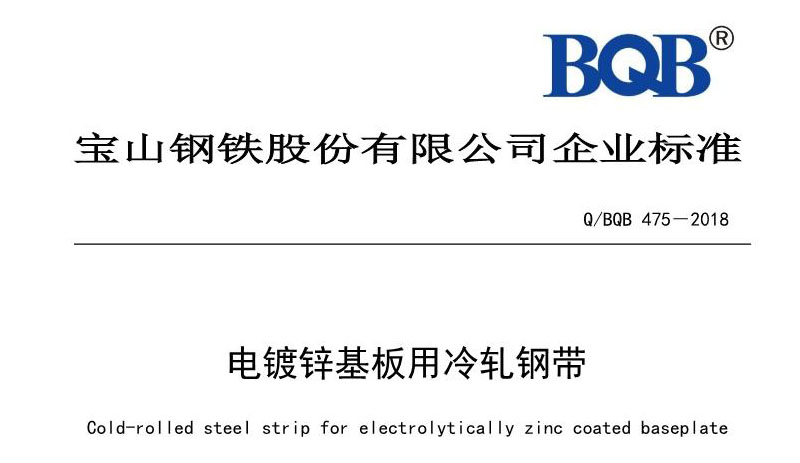 宝钢企标Q/BQB 475-2018电镀锌基板用冷轧钢带