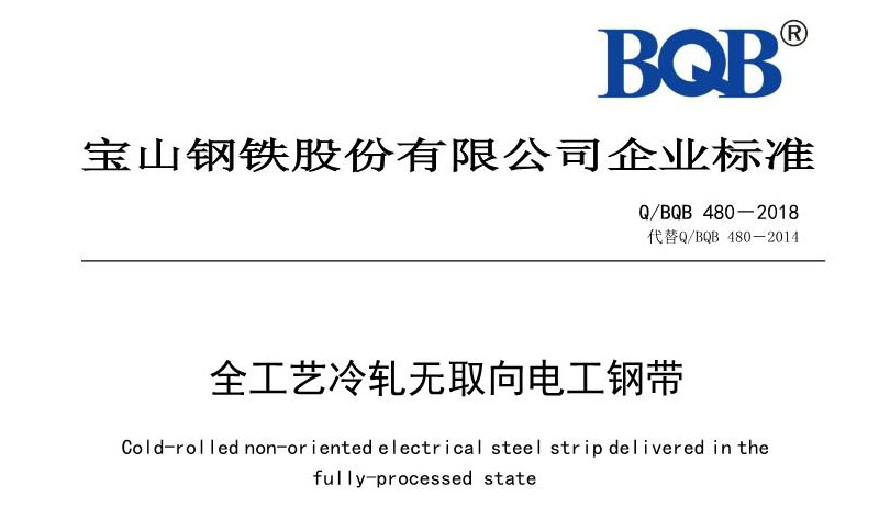 宝钢标准Q/BQB 481-2018全工艺冷轧中频无取向电工钢带