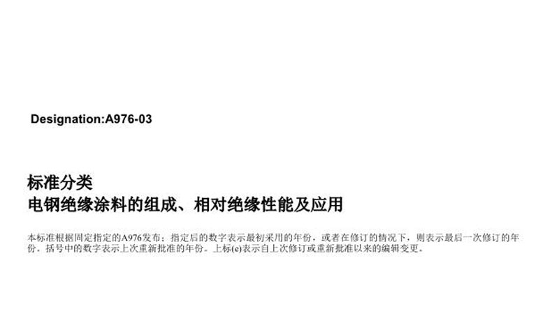 美国标准ASTM A976-03 电钢绝缘涂料的组成、相对绝缘性能及应用